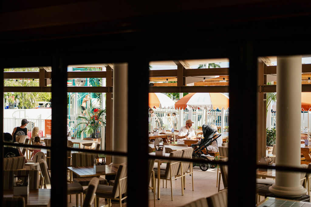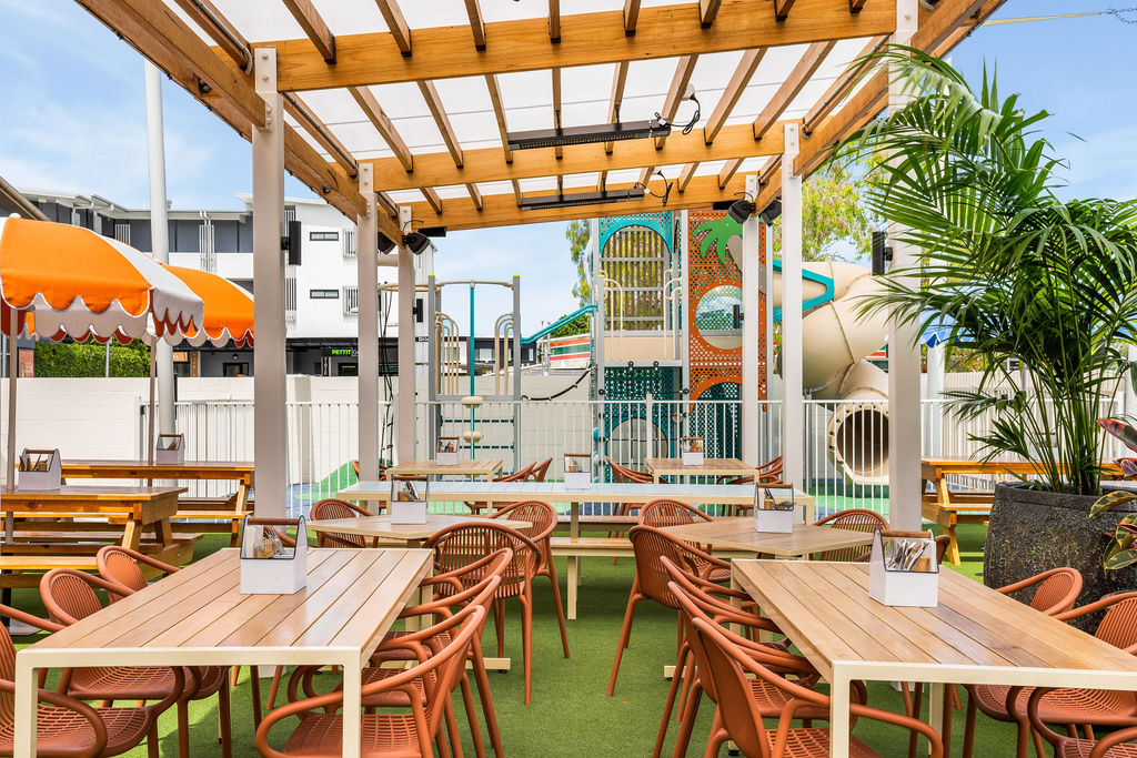 The space features a sprawling outdoor area — an alfresco-style dining and drinking area that feels open, relaxed and family-friendly.